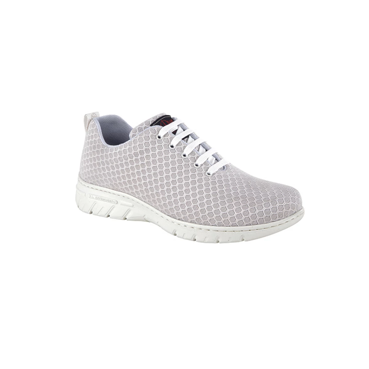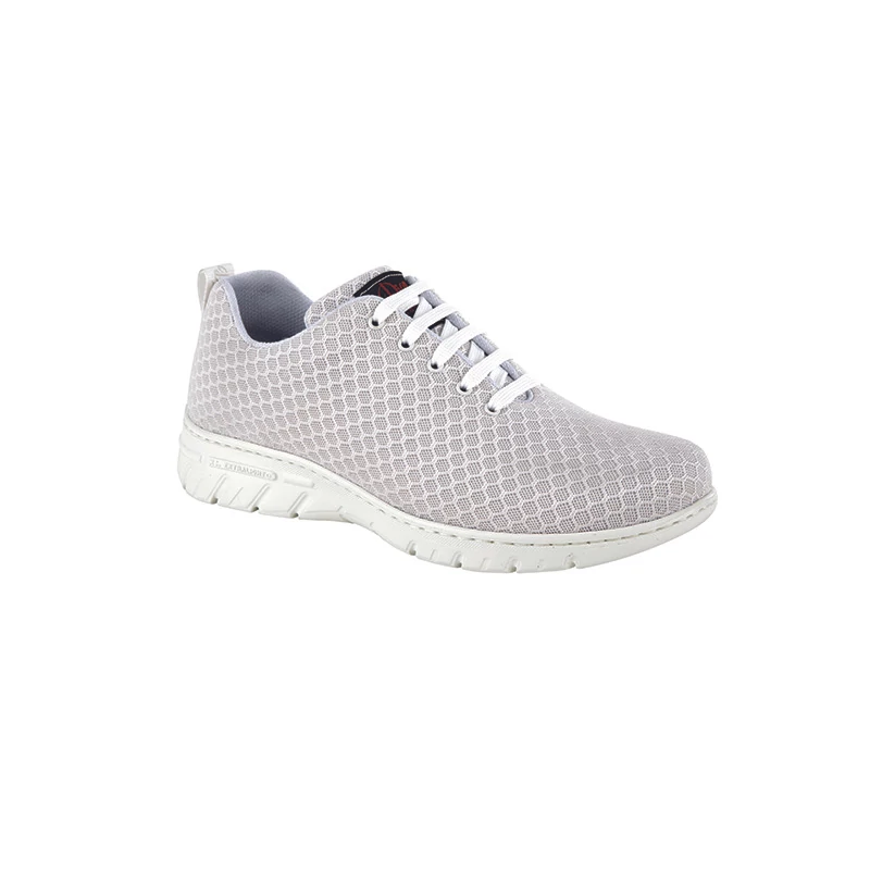 A sarok résznél párnázott, ezáltal megelőzi a sarok kidörzsölődését. Csökkenti a lábak és a gerinc igénybevételét. A cipő egyenes fazonú, lekerekített orrésszel.