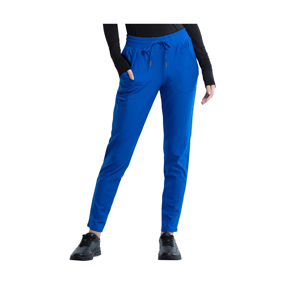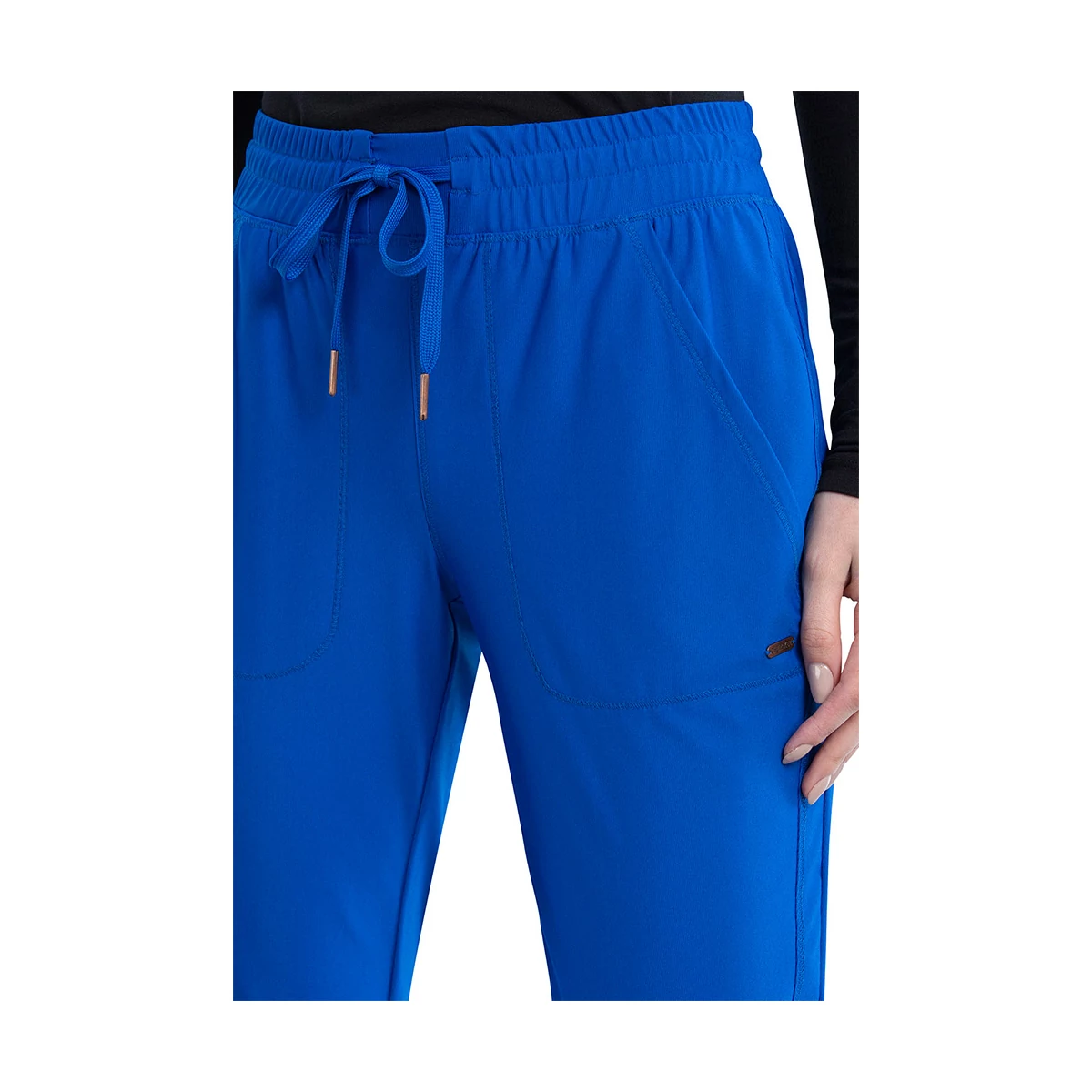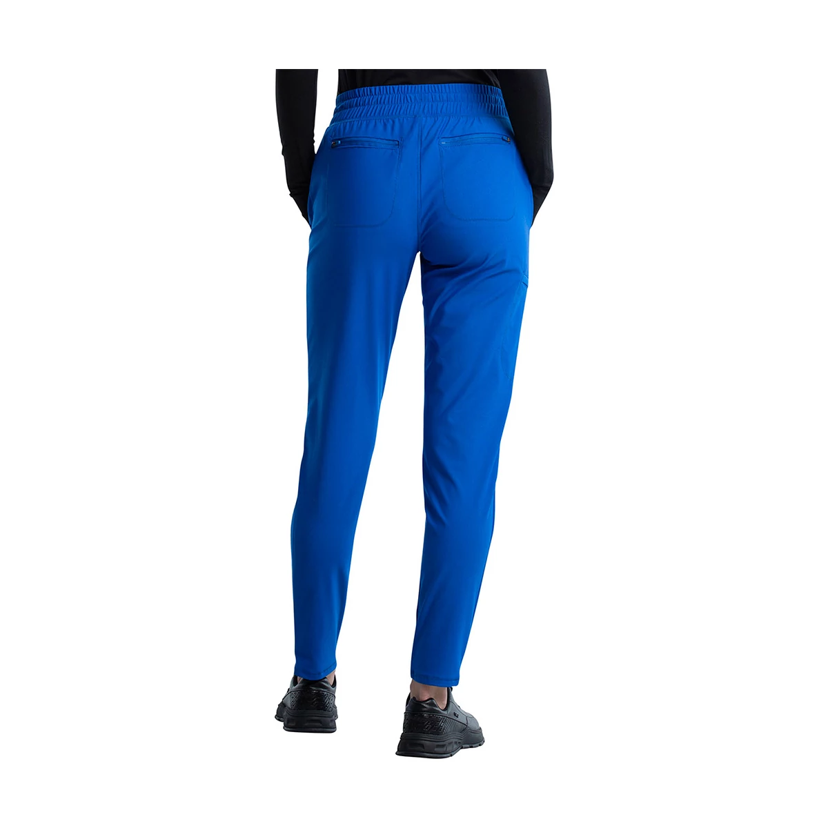 Munkaruha - Középmagas derekú nadrág, gumis derékpánttal, és húzózsinórral szűkíthető. Öt zsebbel rendelkezik, kettő elöl, kettő zipzáros hátul, és egy oldalt. Divatos, szűkített szárral.