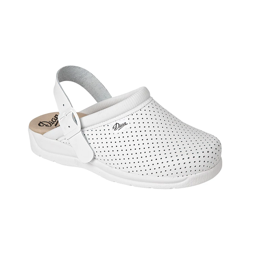 Papucs bélelt, csattal állítható hátsó pánttal. Mikroszálas D’COVER anyagból OEKO-TEX® perforált párnázással készült a kényelmes viseletért. Lekerekített orral. Anatómiai mikroszálas technika. Antibakteriális poliuretán talp ék alakú, kettős sűrűségű, csúszásálló, kétkomponensű poliuretán és TPU. Ez segít megakadályozni, hogy a talp rései eltömődjenek és a csúszásmentesség hatékonysága ne csökkenjen.